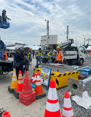災害復旧を想定した、建柱や信号機の取付、架線取付作業などの